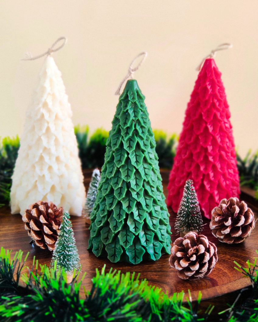 Unscented Soy Wax Christmas Tree Candle – Eco-Friendly Holiday Decor (3 Colours)