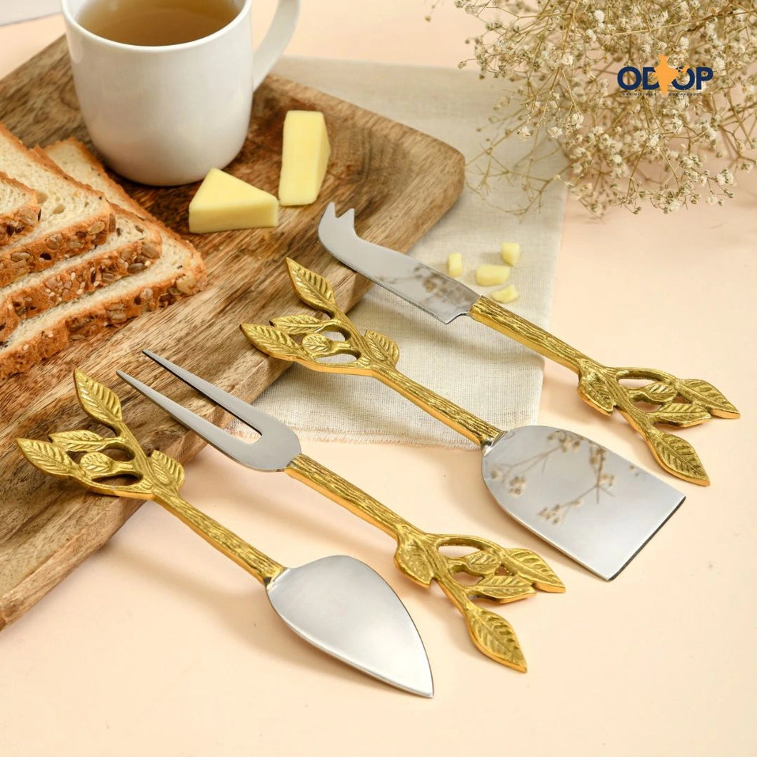 Patram Cheese and Serving Knives | Stainless Steel and Lead-Free Brass | Lead Design | Set of 4
